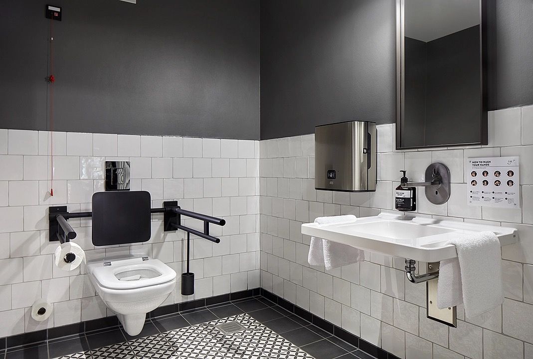 Les lignes épurées et les textures robustes de l'hôtel se marient parfaitement avec le paysage côtier, avec des briques rouges et des éléments noirs mats en évidence dans sa conception, évoquant une esthétique industrielle. La mise en place de sanitaires est devenue un élément déterminant dans les salles de bains et les sanitaires accessibles aux personnes à mobilité réduite de l'hôtel. Ces produits innovants sont connus pour leur adaptabilité et leur style, dotés d'un élégant revêtement en poudre foncé qui complète le design intérieur de l'hôtel.